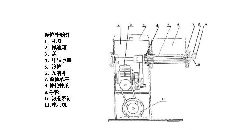 ⑴粒度均一,控制简单;本机是种将潮湿粉末混合物,在旋转滚筒的正、反旋转作用下强制性通过筛网而制成颗粒。