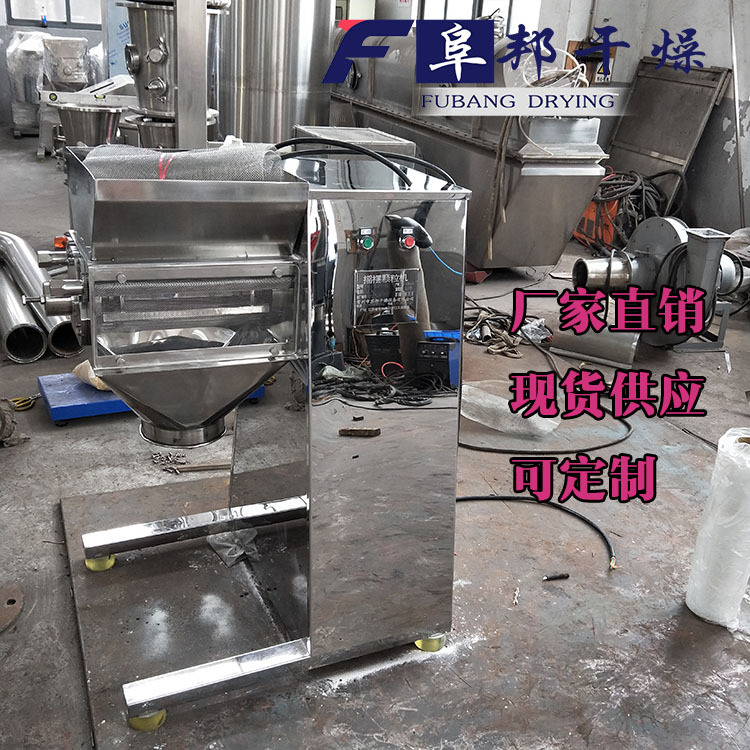 yk160摇摆颗粒机工作原理是将潮湿的粉末粉末混合物,在旋转滚筒的正、反转作用下,经过筛网而制成颗粒的设备,可以通过更换筛网一台设备制作不同大小的颗粒,节约成本。筛网颗粒10mm到100目可选。