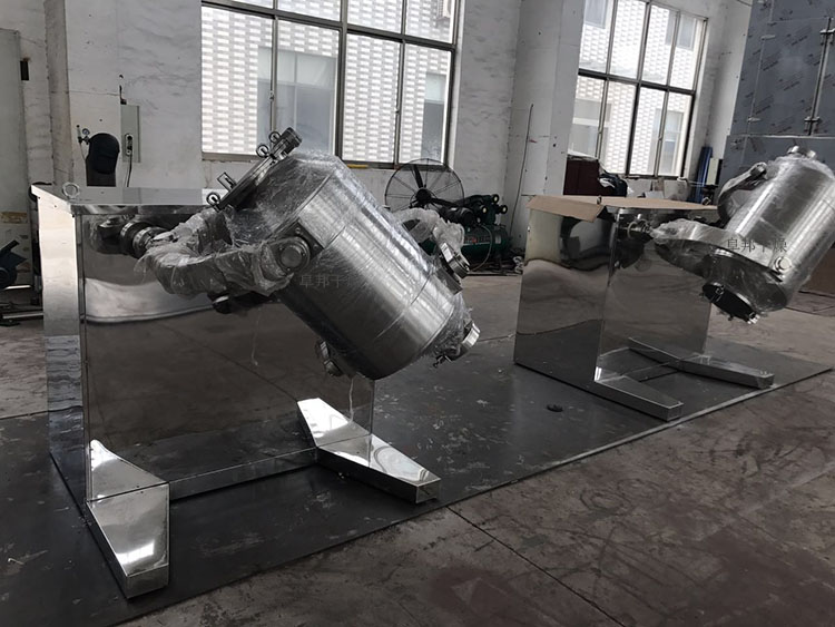 三维运动混合机是混合机的一种,该机用于制药、化工、食品、轻工、电子、机械、矿冶、工业以及科研单位的粉状、颗粒状物料的高均匀度混合。